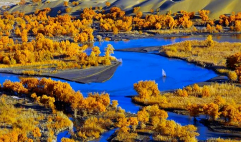 上午行驶在一望无际的大漠中可感受:大漠孤烟直,长河落日圆的孤独景致,可放空自我,沉浸于此时。沿途还有沙漠胡杨、大漠深处时隐时现的和田河河道。
