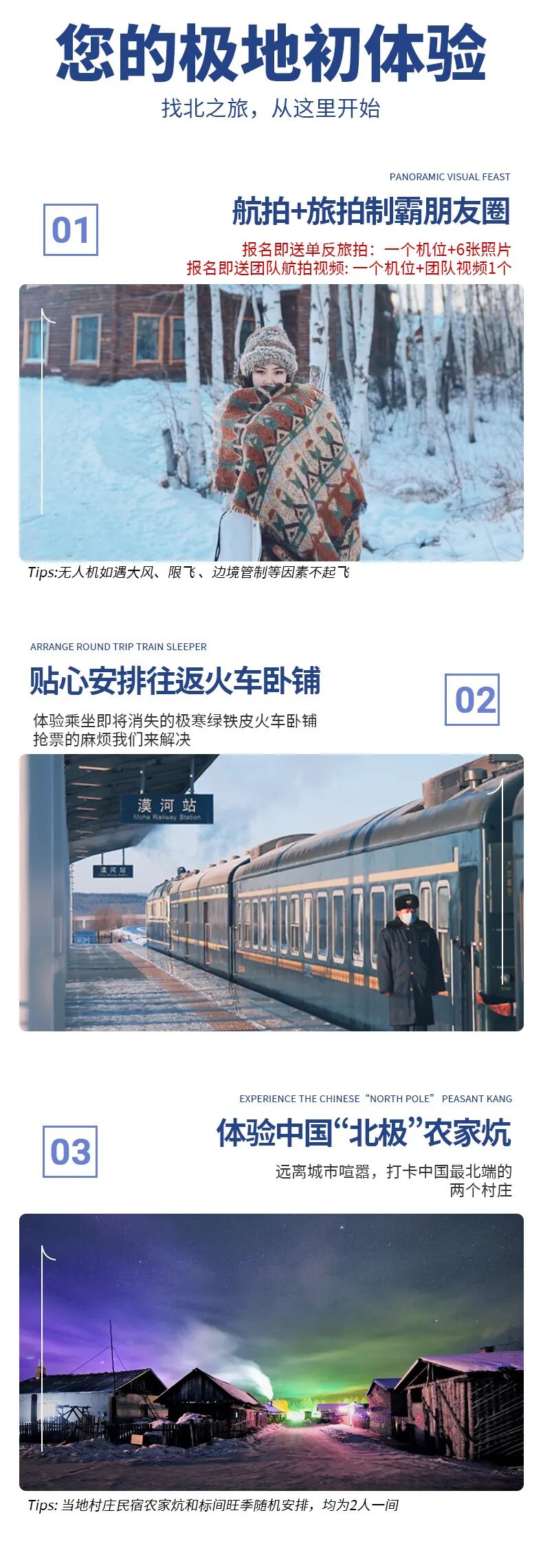 3、北极村住宿条件有限,请自备洗漱用品和吹风机。4、圣诞村和圣诞村滑雪场开放情况以景区为准,如遇关闭则退相应费用。