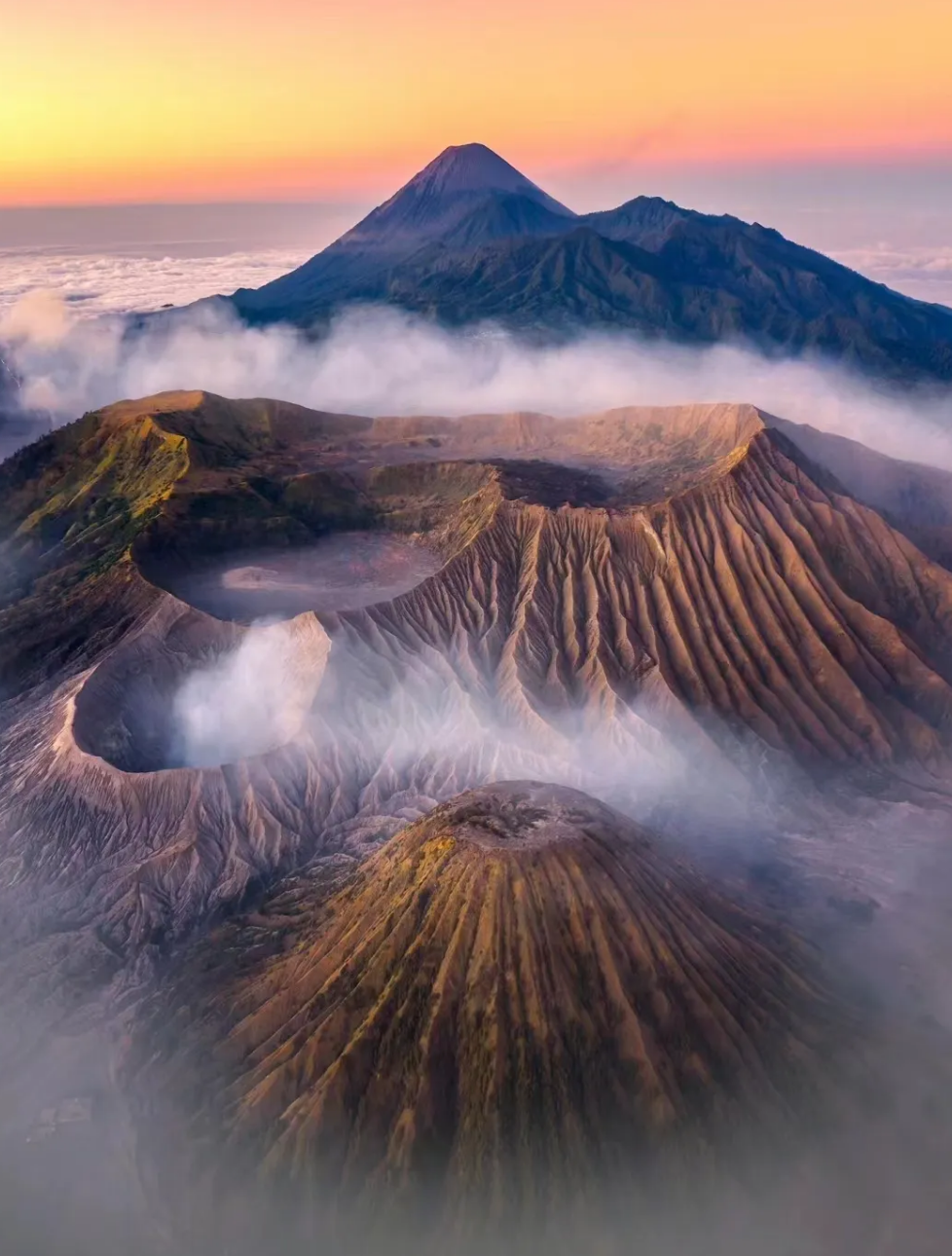 驱车前往Bromo火山下进行【沙海盆地穿越】,这里其实是一个直径超过10公里的巨型远古火山口——【Bromo火山】喷发后留下的坑洞。之后这里又陆续形成5座小火山,站在“C位”的是这里唯一的一座死火山【巴托克火山】,其余的四座都处于活动状态,而不停喷烟的布罗莫无疑是最不安分的那一座。体力好的可以登上【布罗莫火山口】。