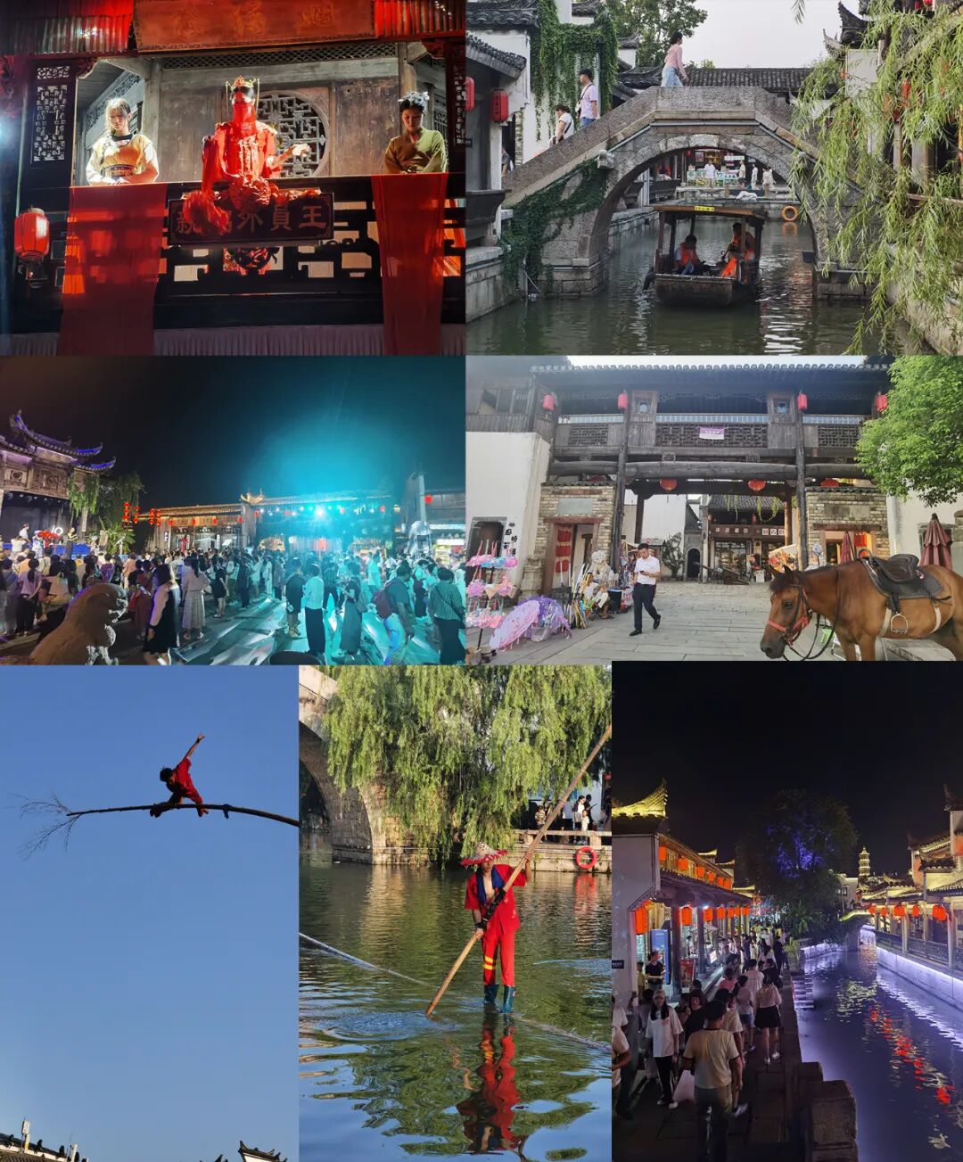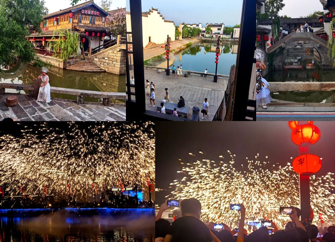 晚上游玩网红打卡地【犁桥水镇】,是一座具有浓厚江南徽派建筑风格的旅游风景区。耗资20亿打造水乡江南风格七星旅游度假区。【小镇大世界】占地面积310亩、江南古民居110栋、古建街道8条、石拱桥11座。【建筑特色】亭台楼榭、临水错落、粉墙黛瓦、外简内秀。【水镇夜景灯光秀】绚烂光影、夜色犁桥。【打铁花】非遗文化,穿越千年的火花传奇。这个春节黄金周,这里开展几十项精彩演出,民俗文化活动,从早到晚,精彩演不停!(表演以景区安排为准),夜景游玩结束,适时返回酒店休息。