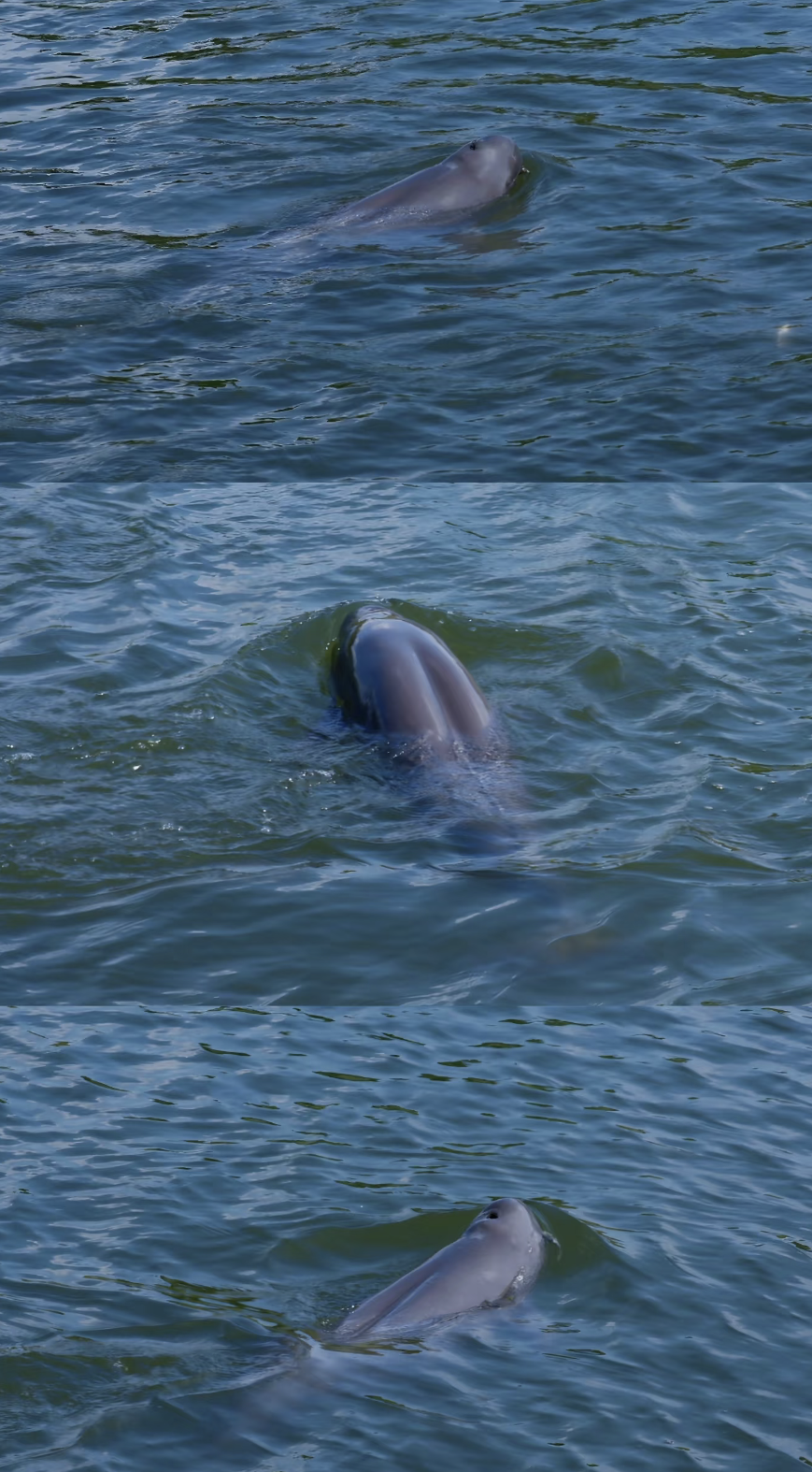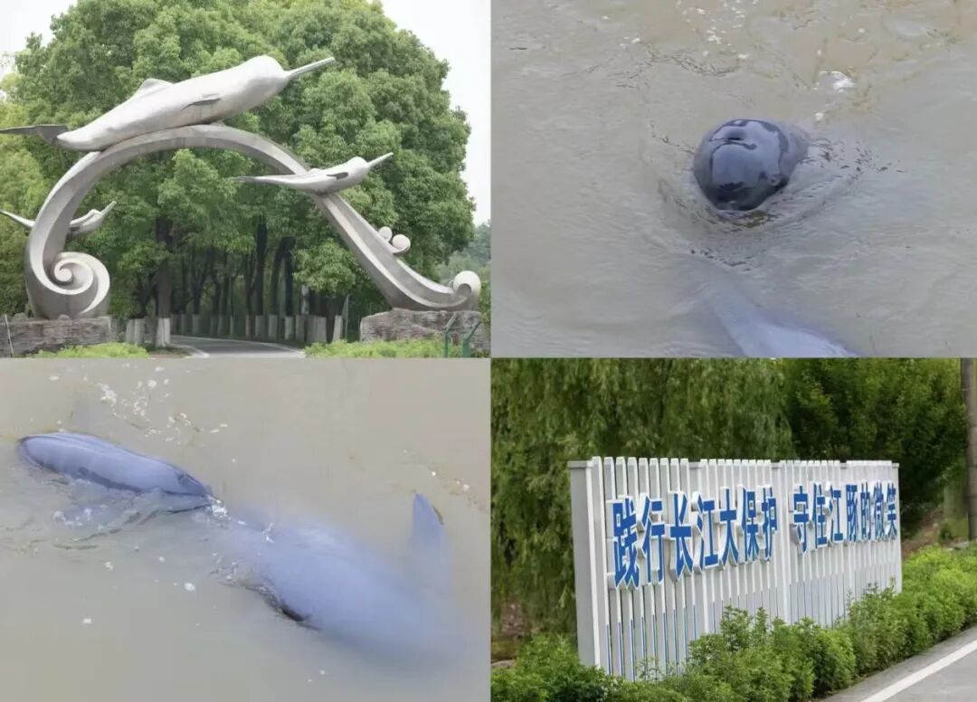 江豚是有“水中国宝”之称的长江江豚。长江江豚现存数量比大熊猫还少,它们外形活泼可爱,有微笑天使之称。