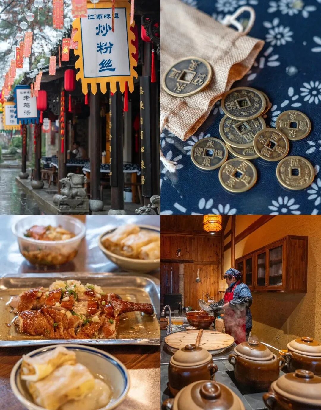 早上指定时间,东环路地铁站集合出发(具体实际以领队通知为准),车次3.5小时,抵达【永泉忆江南·12景 】,明清年代的老砖小瓦,搭建的一条完全复原江南民居建筑的街区,有青石板,老灶台,临街店铺二十余间,中午我们可以换铜钱,自由选择景区内独特的小吃一条街【江南味道】。这里是只能用铜钱消费的地方,就连微信和支付宝都不能使用。游客可自行前往景区内的【永泉钱庄兑换铜币。
