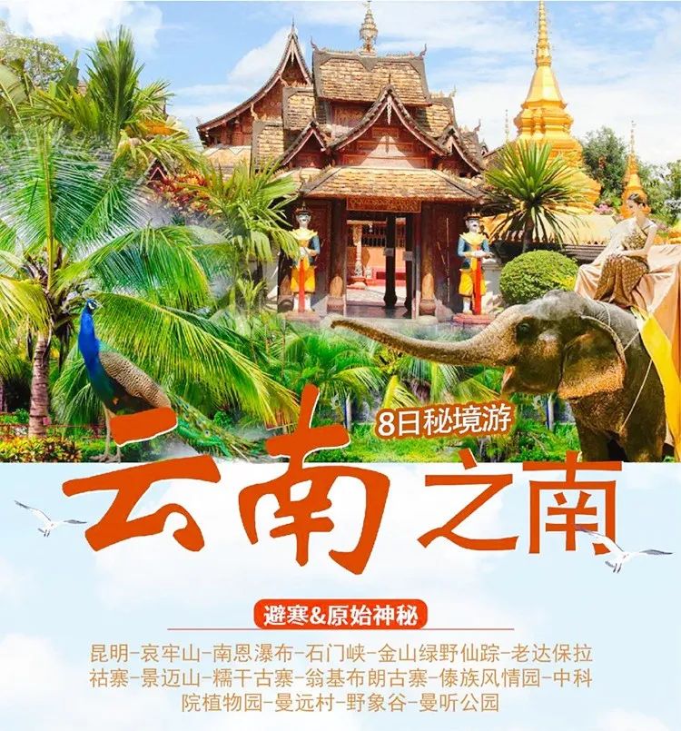 【集散方便】:昆明集合,西双版纳解散(可跟车回昆明),行程不重复没有回头路;