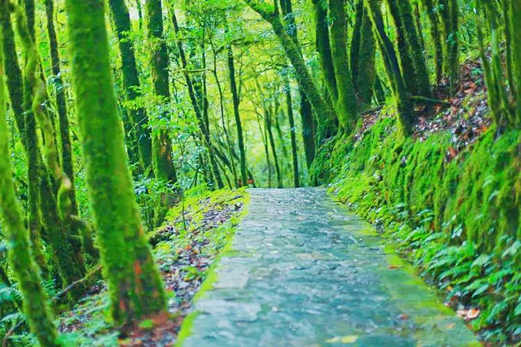 接着我们前往金山原始森林。这里完全就像电影里的绿野仙踪,树上路上都长满了青苔和各类植物,负氧离子含量极高。结束后我们到达茶马古道观光,这里有着几百年前的茶马古道及古村落历史遗迹,植物茂密,空气清新。