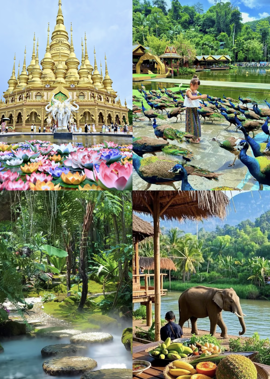 早晨出发到达西双版纳原始森林公园,这里植物茂密,负氧离子含量很高,可以顺着往上走体验一段热带雨林徒步。还有各种野生动物,其中孔雀放飞是值得大家期待的节目哦。