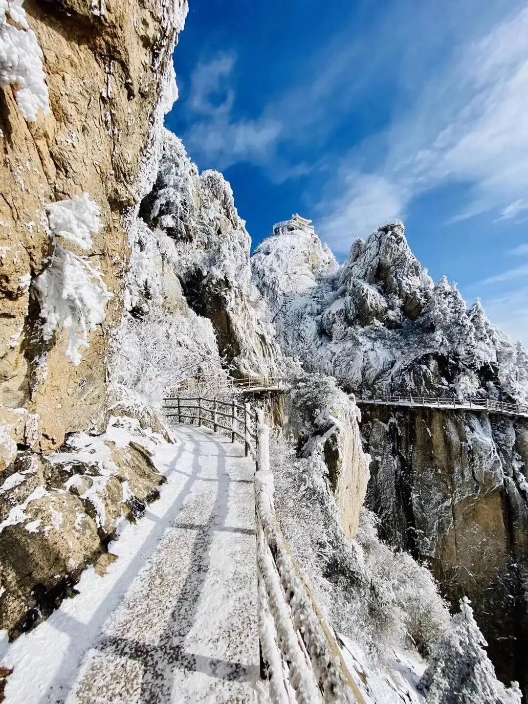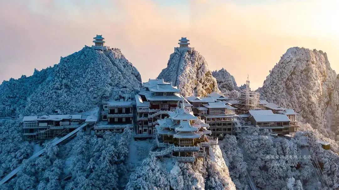 冬到老君山雪景浩瀚,天上人间邂逅琼楼天宫。