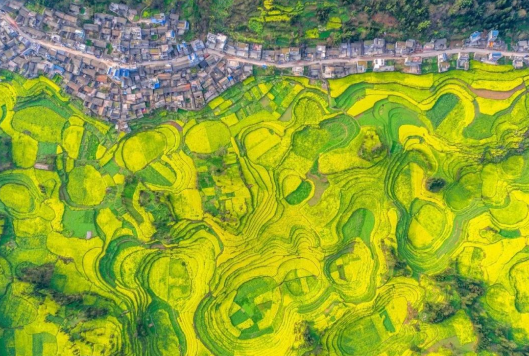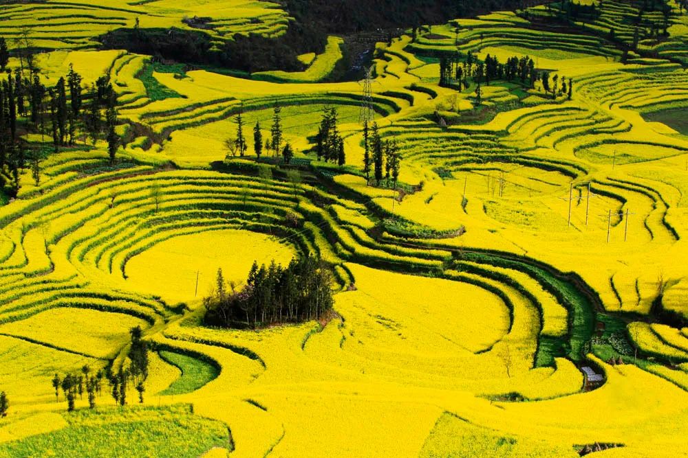 后到达罗平【螺丝田油菜花】,这里的油菜花田呈现出螺丝状的梯田,与元阳的梯田形成鲜明的对比,让你不得不感叹劳动人民才是真正的艺术家,注意此处拍摄是在公路边,注意安全。欣赏完我们返回罗平县城入住酒店;