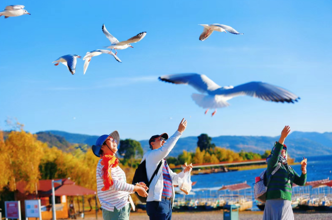 1.自行到【海埂大坝】附近逛逛,那边有来自西伯利亚的【红嘴鸥】,【云南民族村景区】和【西山国家风景区】,从民族村可以坐索道上去到西山风景区,到风景区龙门远眺整个滇池和大片昆明地区,风光很美;