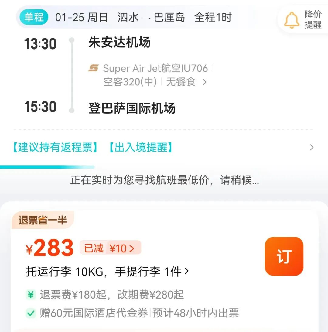 下午送机,乘坐泗水飞巴厘岛【住巴厘岛库塔】