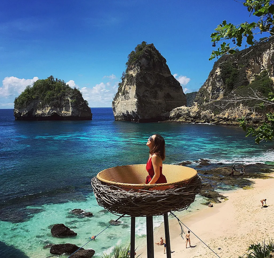 阿图海滩:海滩被壮丽绿色悬崖所遮蔽,大自然的鬼斧神工钻石海滩:巴厘岛天堂级的白色海滩,网红海边秋千与鸟巢就是在这里网红树屋:树屋(浮动)