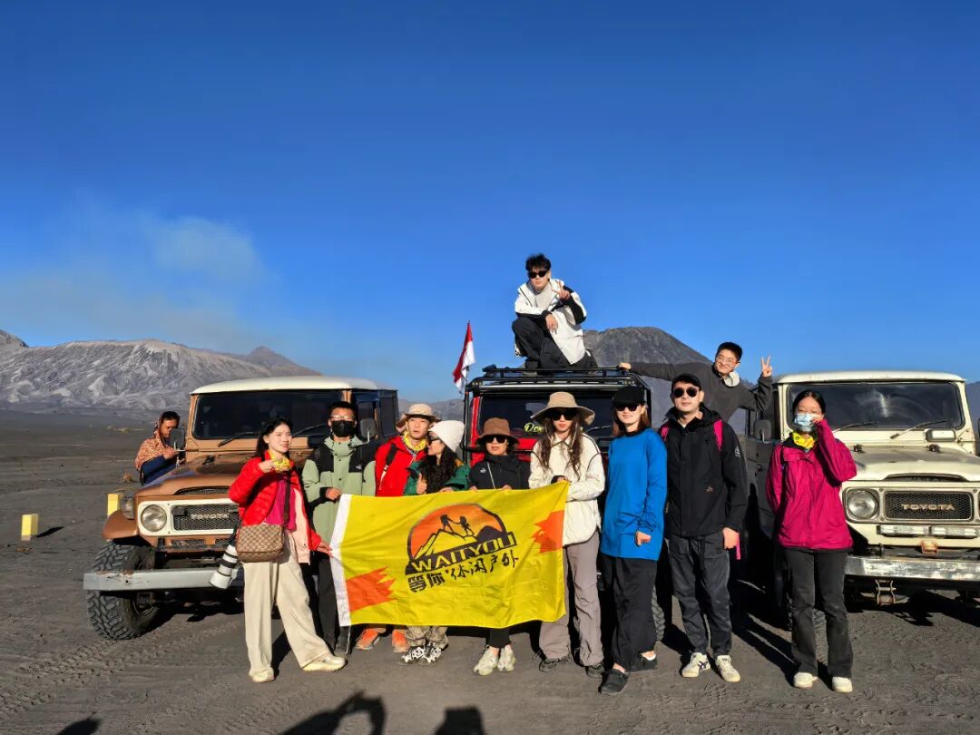 驱车前往Bromo火山下进行【沙海盆地穿越】,这里其实是一个直径超过10公里的巨型远古火山口——【Bromo火山】喷发后留下的坑洞。之后这里又陆续形成5座小火山,站在“C位”的是这里唯一的一座死火山【巴托克火山】,其余的四座都处于活动状态,而不停喷烟的布罗莫无疑是最不安分的那一座。体力好的可以登上【布罗莫火山口】。