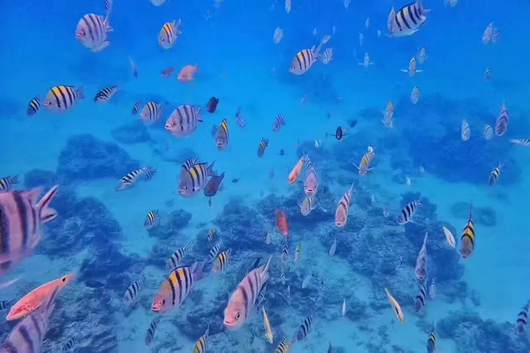 纯净的海水仿佛PS过,海底世界更是五彩缤纷。