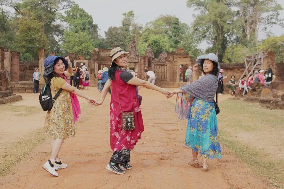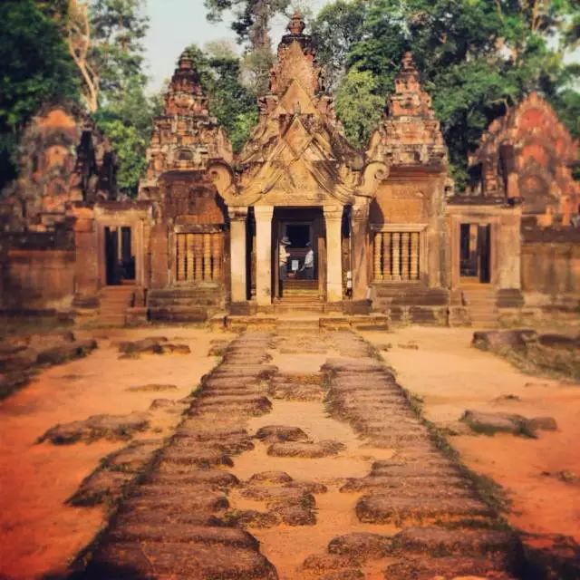 早上小吴哥前看日出后前往于1914年被发现的有着“吴哥古迹明珠”和“吴哥艺术之钻”之称的美丽的斑蒂丝蕾-又称【女王宫】,是吴哥遗迹里相当特别的一座建筑。接着来到因电影“古墓丽影”而大红大紫的【塔普伦寺】。