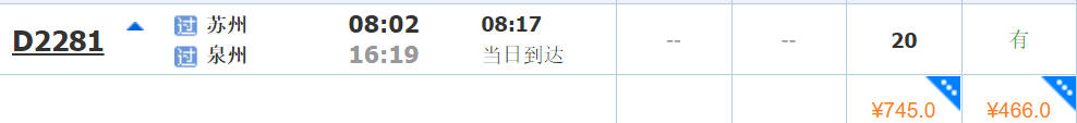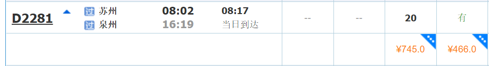 去程动车参考: