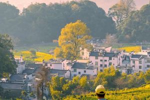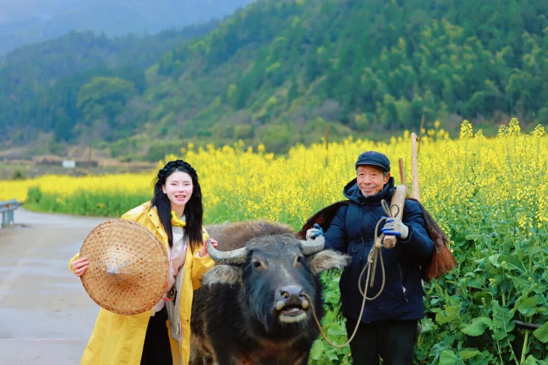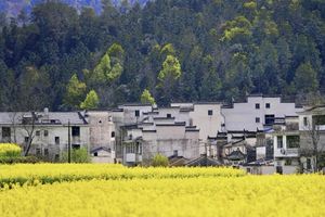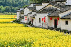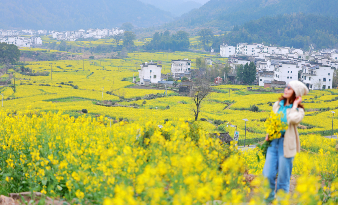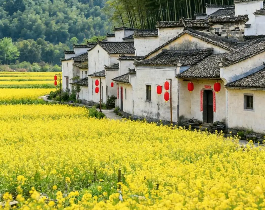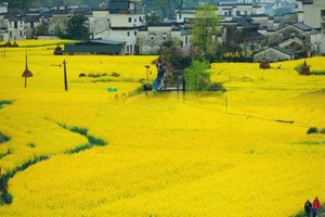 白墙黑瓦袅袅炊烟,璀璨金黄油菜花田