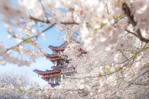 中式的赏樱阁总是与樱花一同入镜,仿佛成了人们约定俗成的东西。