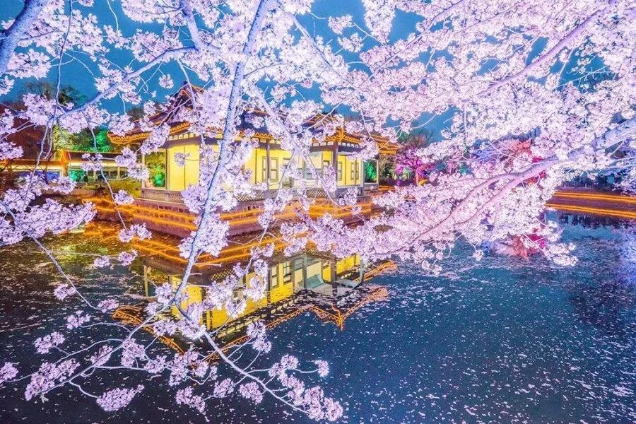 景区还推出了全国首个“樱花夜公园”,音乐、灯光为樱花衬托,月夜下的樱花,有着别样的美丽和层次。