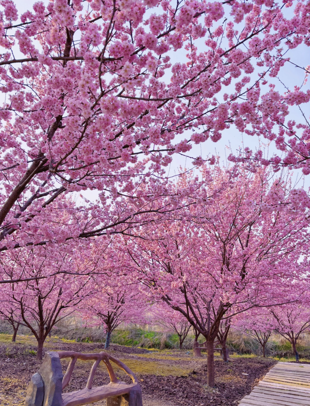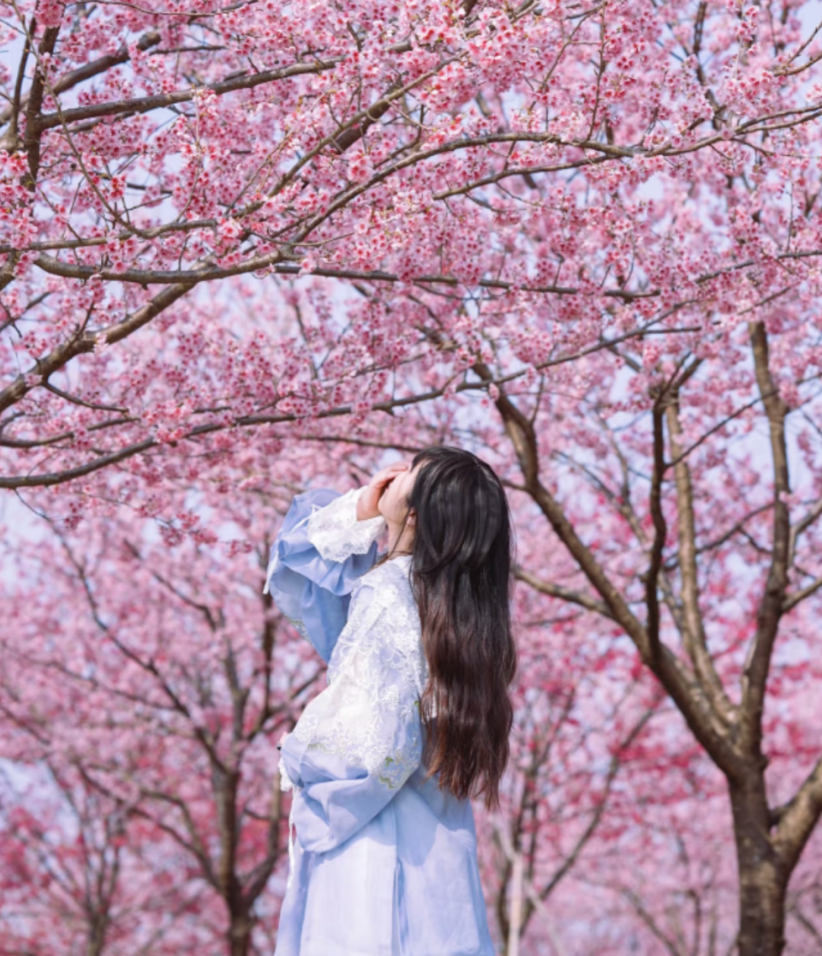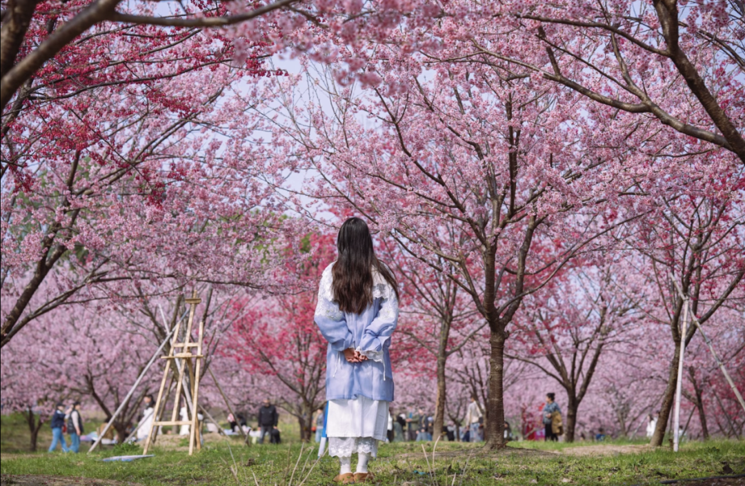 【不想徒步的小伙伴,可留在樱花林继续拍照,随后乘车直达终点,仅需步行约 2.5km 公路折返,轻松打卡玉兰花海。】