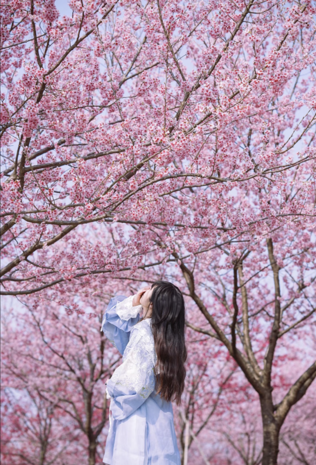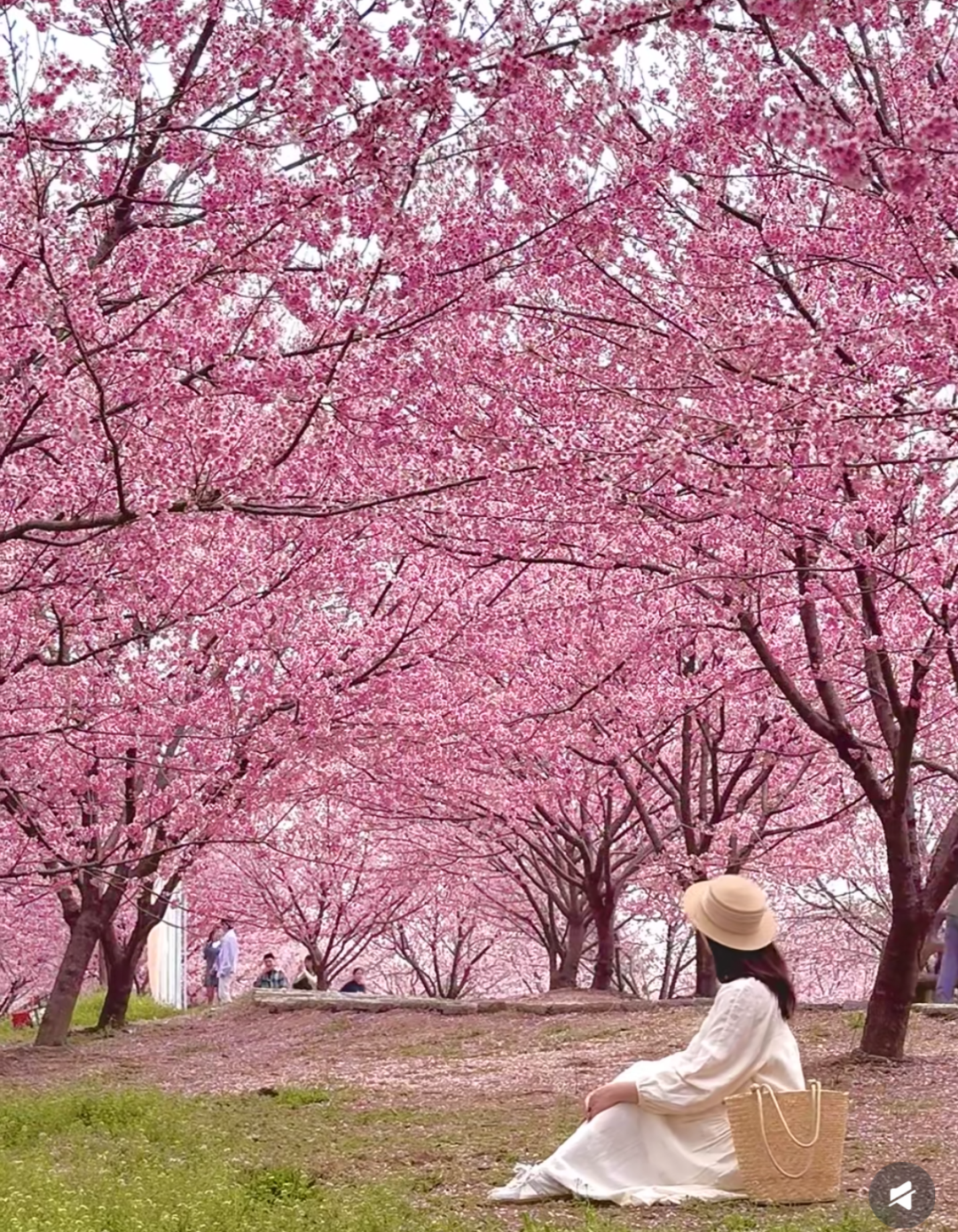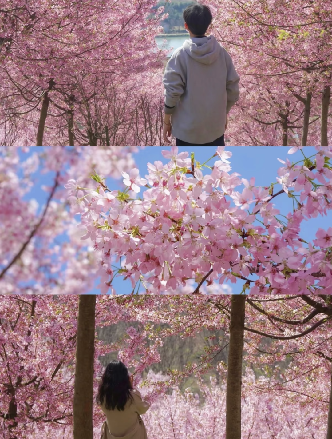 【不想徒步的小伙伴,可留在樱花林继续拍照,随后乘车直达终点,仅需步行约 2.5km 公路折返,轻松打卡玉兰花海。】
