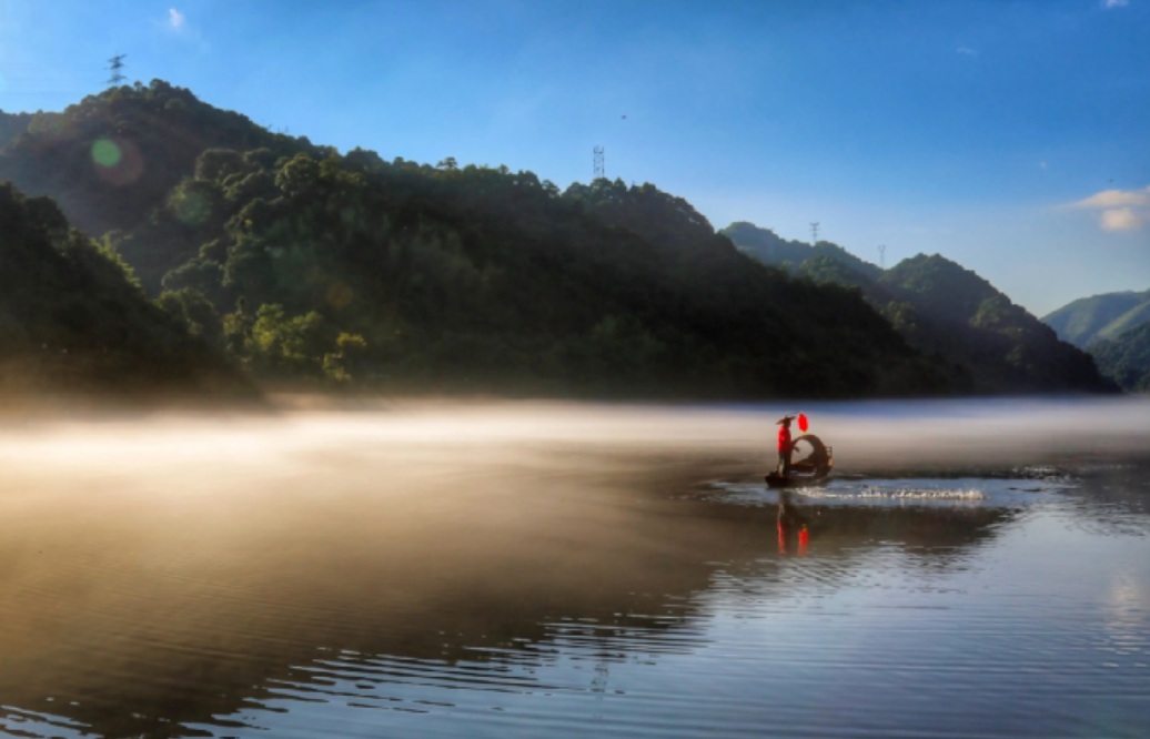 小东江的水从东江大坝底部一百米深处流出来,水温常年保持在8-10℃,而湖面的水温却达20℃左右,由于温差的效应再加上两岸植被茂盛,于是,小东江水面上便常年云雾弥漫,如梦如幻。