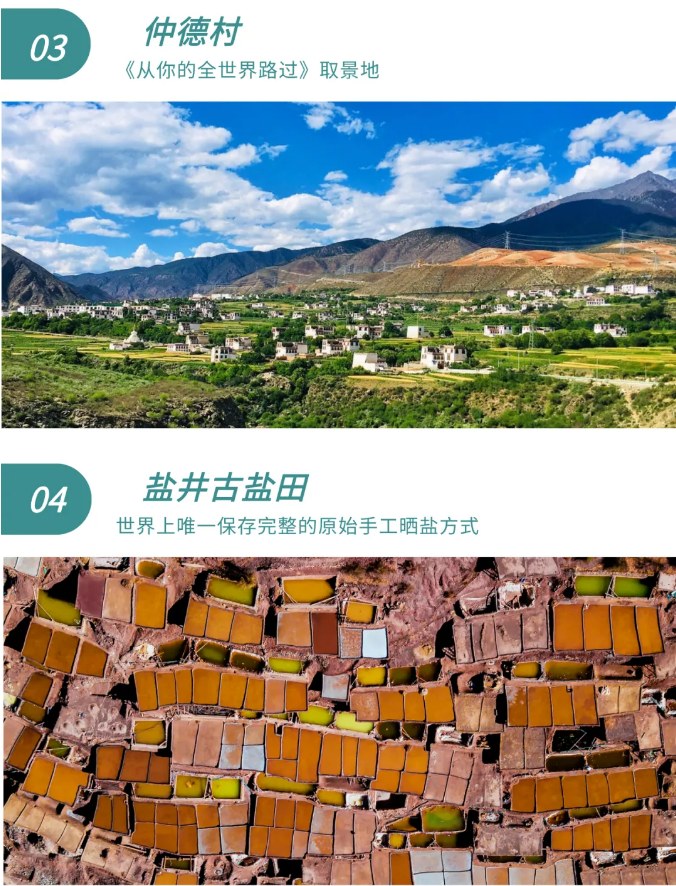 3、门票:虎跳峡、白水台、普达措森林公园+观光车、梅里雪山观景台、来古冰川门票+景交、墨脱门票+景交、巴松措门票+环保车、羊湖门票