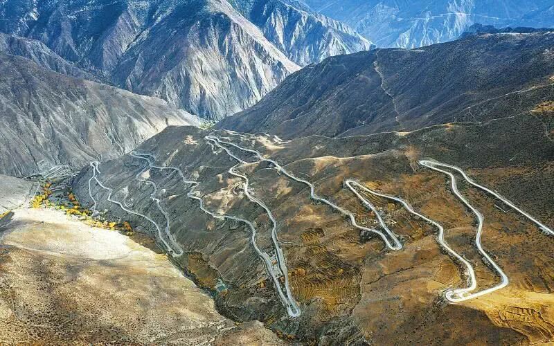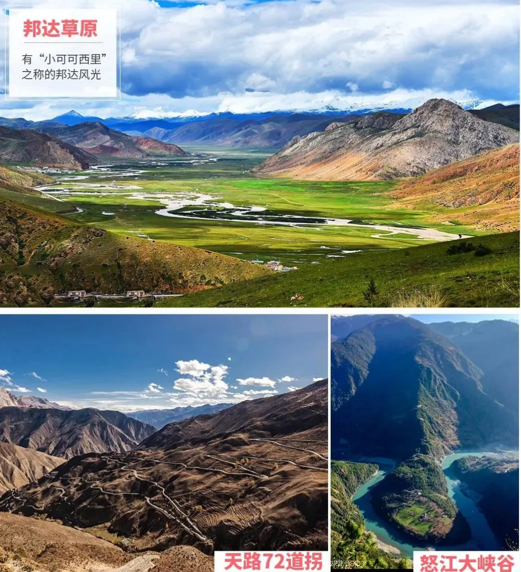 行程:从竹卡出发、跨越蜿蜒的澜沧江,过竹卡桥翻越觉巴山、下至榮許兵站、翻越川藏线上最高的山口——东达山,海拔超过5008米。从高入云天、白雪皑皑的山口极目远眺,川藏公路和澜沧江似两条晶亮的丝带,在千山万壑间,时隐时现,抵达左贡。再从左贡东达拉山口便到达邦达, 海拔在4400米的邦达是川藏南线和北线的交会处,北通昌都,西至林芝、拉萨,是一个重要的交通枢纽。再从帮达出发翻越横断山最大的天险—怒江山,经著名的九十九道拐下行到八宿。
