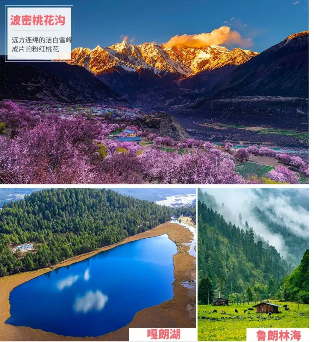 早餐后,从墨脱出发,沿途欣赏“藏王故里,静好波密”水墨画般的美丽风景,经通麦,通麦素有天险之称,在川藏线上也一直备受瞩目,随着国家建设,【通麦大桥】已经由天险变通途,驶过通麦、排龙,穿过鲁朗镇,翻越冰雪覆盖,云雾缭绕的【色季拉山】(垭口海拔4702米),此山是观看【南迦巴瓦峰】最好的地方之一,站在色季拉山,遥望著名的南迦巴瓦峰,顿觉心旷神怡。翻过色季拉山,一路下坡抵尼洋河,欣赏美丽的河谷风光,随后继续前行抵达被誉为“西藏小江南”的林芝入住。