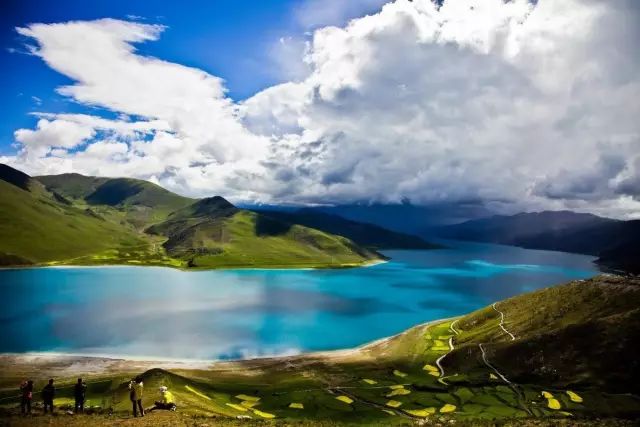 行程:今天我们行程的重点是羊卓雍措(三大圣湖之一)和普莫雍措。早起离开贡嘎县,翻越5030米岗巴拉山口,闻名遐迩的西藏三大圣湖之一的羊卓雍措就出现在我们眼前,羊湖之美,不再赘述。我们有接近1.5小时时间,驱车沿着羊湖岸边前行,经过浪卡子县之后,海拔逐渐上升,传说中的普莫雍措,不经意的的闯入我们视线。普莫雍措是世界最高的大型淡水湖,湖面海拔5010米,湖面面积295平方公里,水源是库拉岗日雪山的冰川积雪融水,出水流向羊卓雍措。“普莫”藏语意为少女,“雍措”意为像碧玉一般的湖泊,因此普莫雍措湖水,被称为少女的眼泪。普莫雍措被连绵的雪山所围拢,巍峨的库拉岗日神山就在湖旁。库拉岗日海拔7538m,整个雪山由三座高峰组成,与库拉岗日相依而立的有6座7000m以上的山峰。湖滨水草较丰茂,周围是一望无际的草原和连绵的雪山,湖面波光粼粼,蔚蓝剔透,置身其中,有人间天堂之美感。紧靠湖边的悬崖上,有一座叫推甘丹拖门林寺的寺庙,围绕寺庙一周建起的转经路是浑然天成的观湖圣地。传说这湖曾被莲花生大师所加持,从而有了神圣的气场。