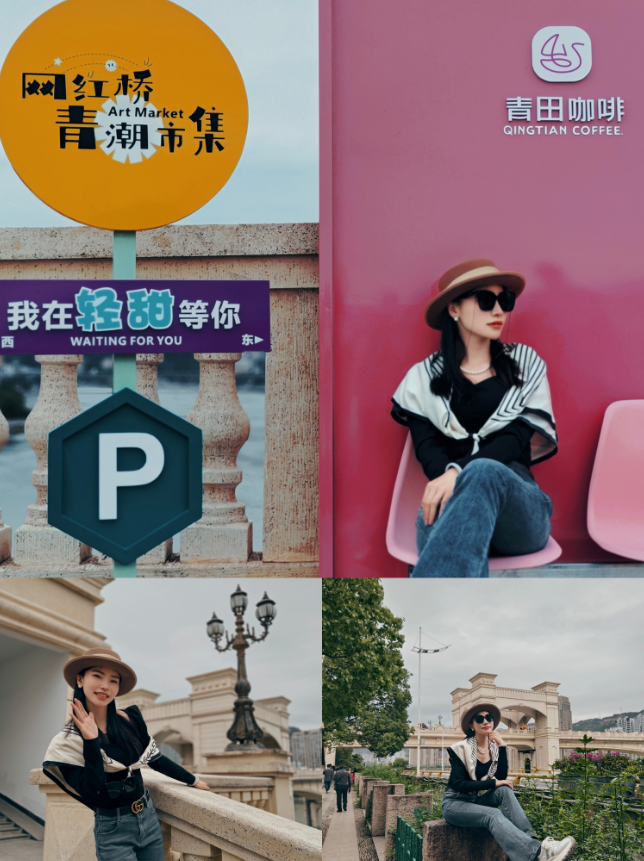 而在桥上,不用刻意去等,身着风衣,头戴墨镜,披着丝巾的阿姨们便款款走来,这一秒误入异国桥头。