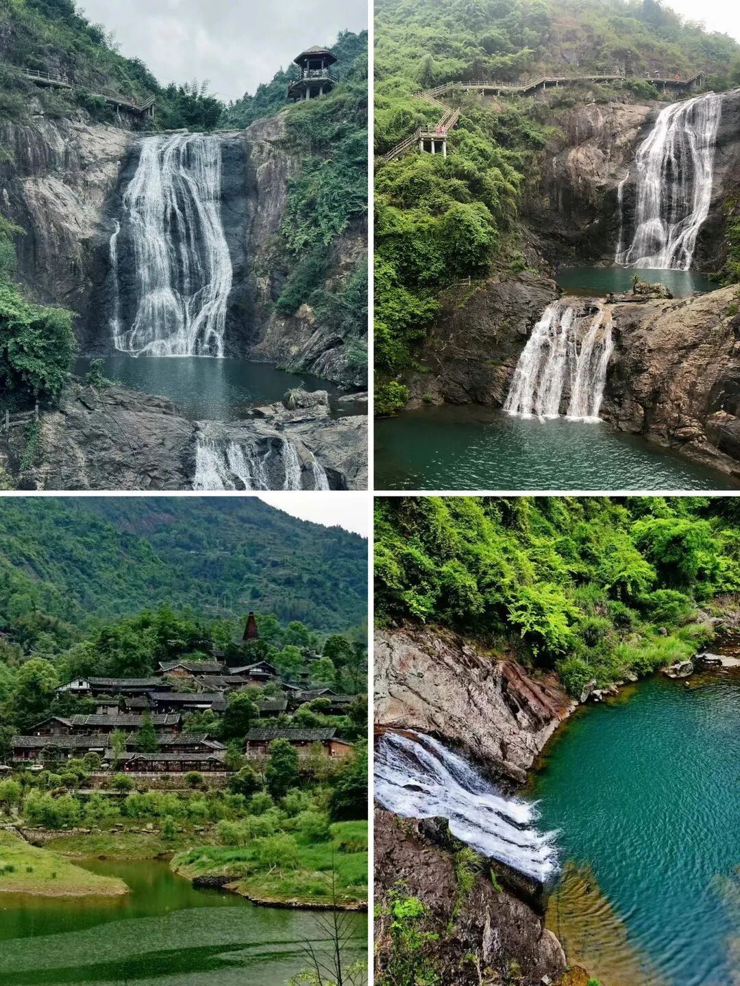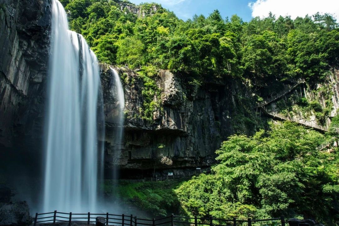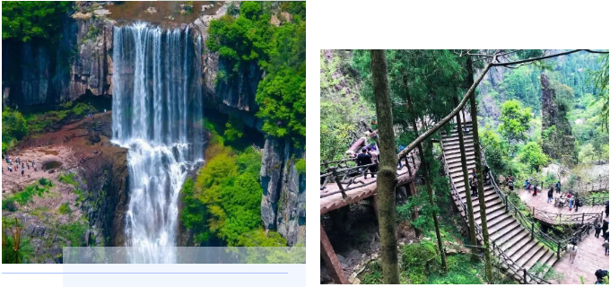 车赴国家5A景区【百丈漈景区】有着一漈雄、二漈奇、三漈幽等特色。瀑布上游汇集200多平方公里的集雨面积,汇成激流突奔百丈深壑,形成了一漈百丈高、二漈百丈深、三漈百丈宽的阶梯型瀑布群。2013年被上海大世界基尼斯总部认证为“中国单体落差最高的瀑布(常年流水)”,同时入选“中国十大名瀑”。 百丈漈以“瀑奇、湖美、洞怪、潭多、峰秀”而著称,四周群山、峰林拔地而起,直插天际。